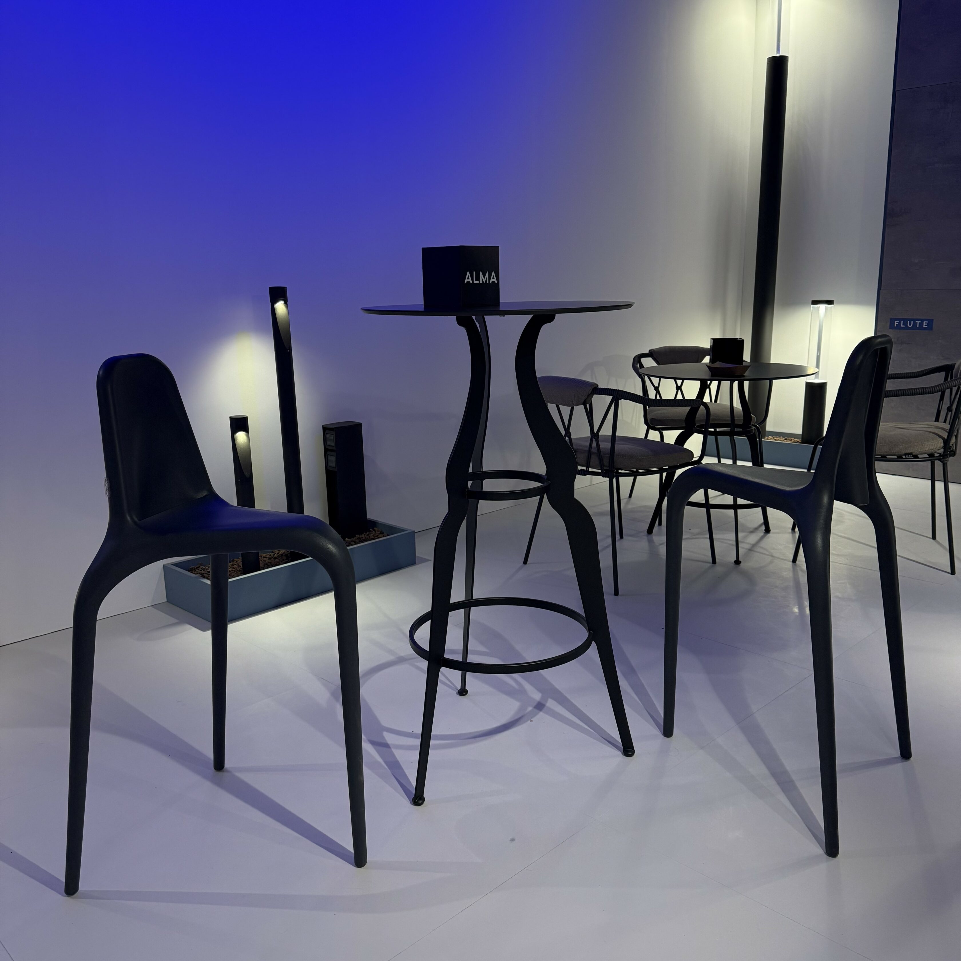 La progettazione di Bistro punta sulla massima personalizzazione: la base è disponibile nelle configurazioni a tre o quattro gambe, studiate appositamente per ospitare con armonia piani tondi o quadrati. Per rispondere alle diverse esigenze del settore hospitality e domestico, la collezione include inoltre la versione poseur table (h 1100 mm), perfetta per creare angoli bar o zone d’appoggio informali dal gusto sofisticato.