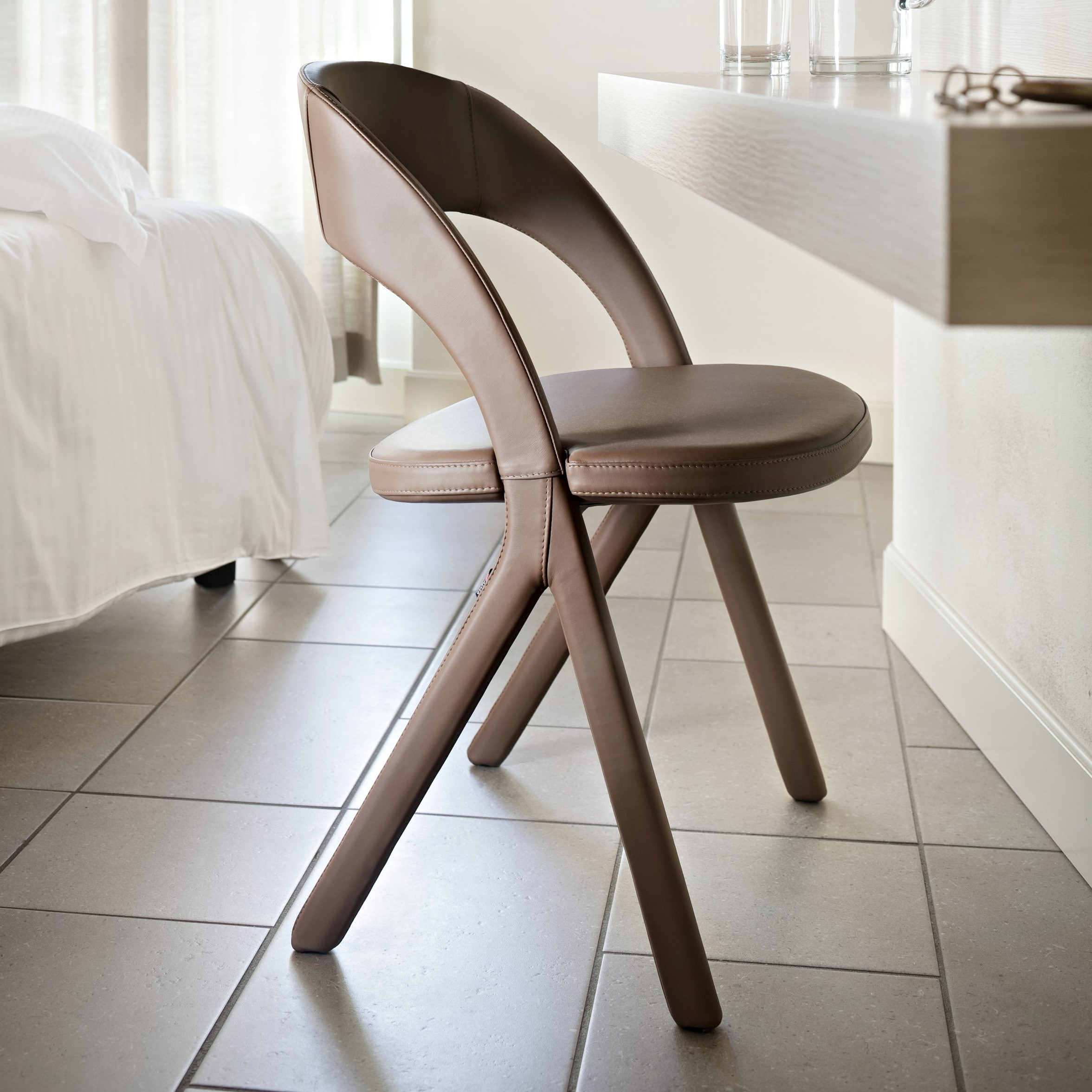 Gesto interpreta il concetto di seduta contemporanea attraverso un equilibrio attento tra forma, comfort e carattere. Il rivestimento in pelle valorizza la pulizia del design e conferisce all’insieme un’estetica sobria e sofisticata, adatta a contesti professionali e residenziali di alto livello.