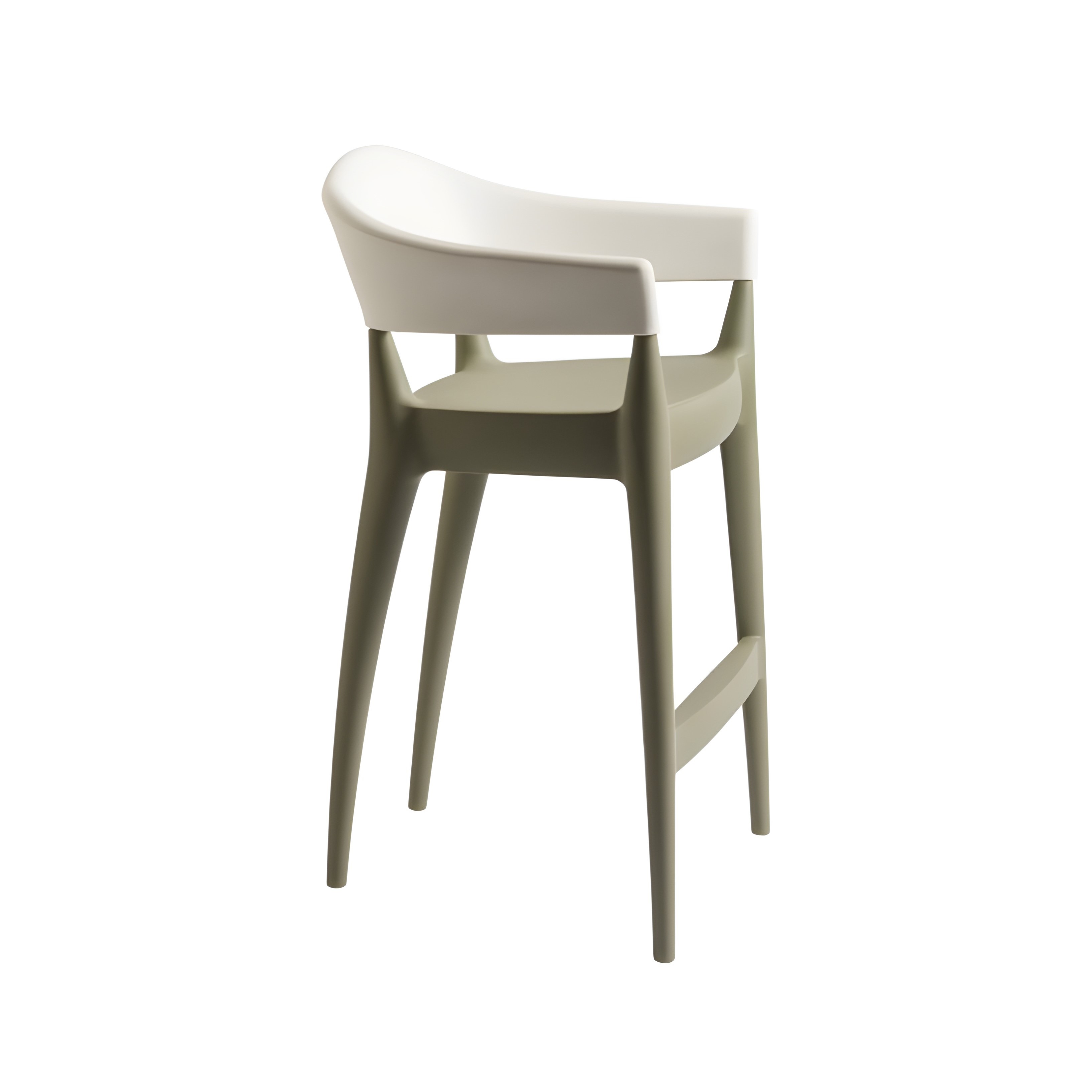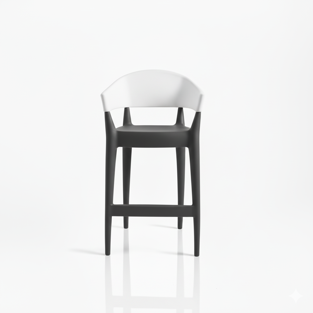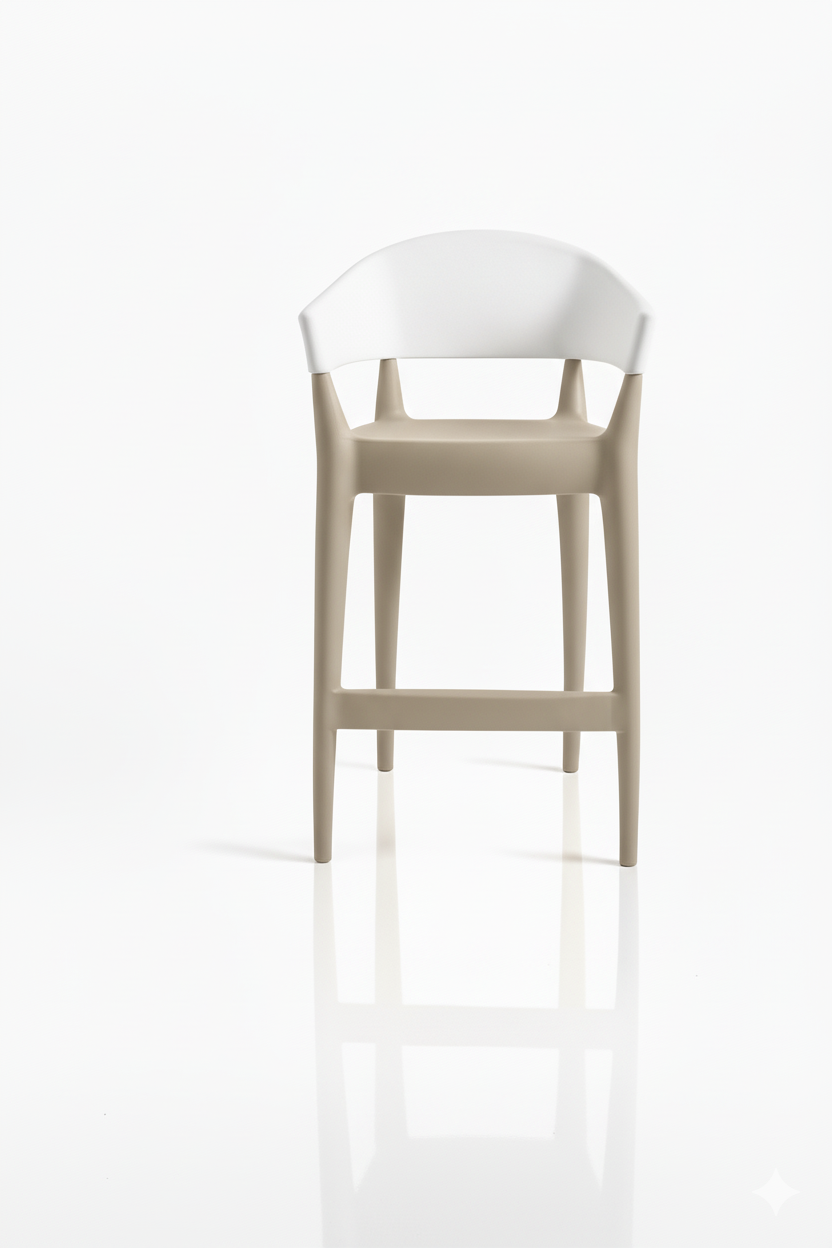 Jo è uno sgabello pensato per integrare estetica contemporanea e comfort funzionale. Il contrasto equilibrato tra lo schienale bianco e la base color sabbia valorizza la pulizia formale del progetto, conferendo allo spazio un’immagine ordinata e sofisticata.