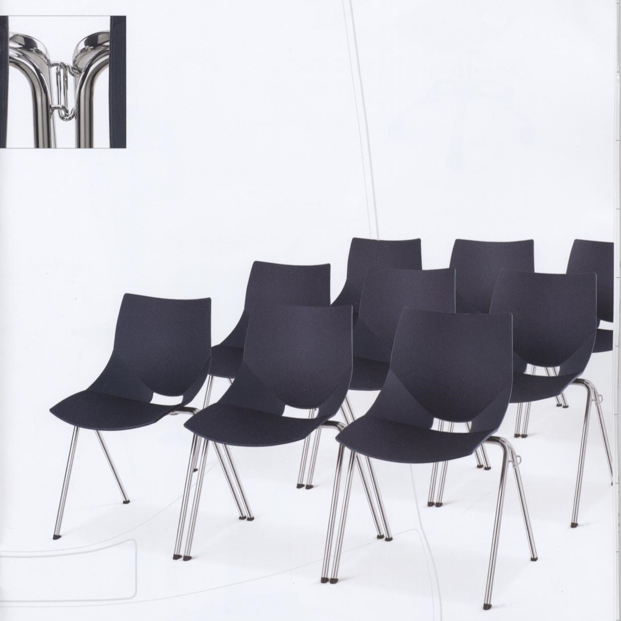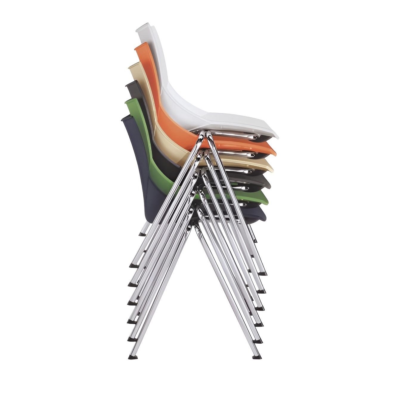 Il vero punto di forza di questa collezione è la sua ingegneria salvaspazio: la struttura a quattro gambe in tondino d’acciaio è stata progettata per garantire una sovrapponibilità verticale fluida e sicura, permettendo di impilare numerosi pezzi in poco spazio quando non in uso. La combinazione tra la resistenza dei materiali e la leggerezza strutturale rende la sedia Nut un elemento indispensabile per uffici, centri formativi e contesti hospitality che necessitano di trasformare rapidamente la configurazione degli ambienti senza rinunciare a un tocco di colore e design d’avanguardia.