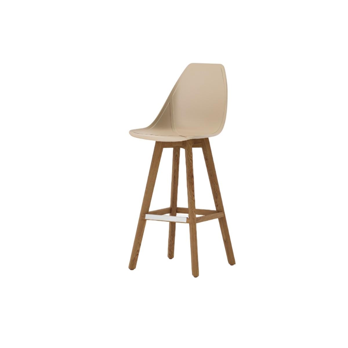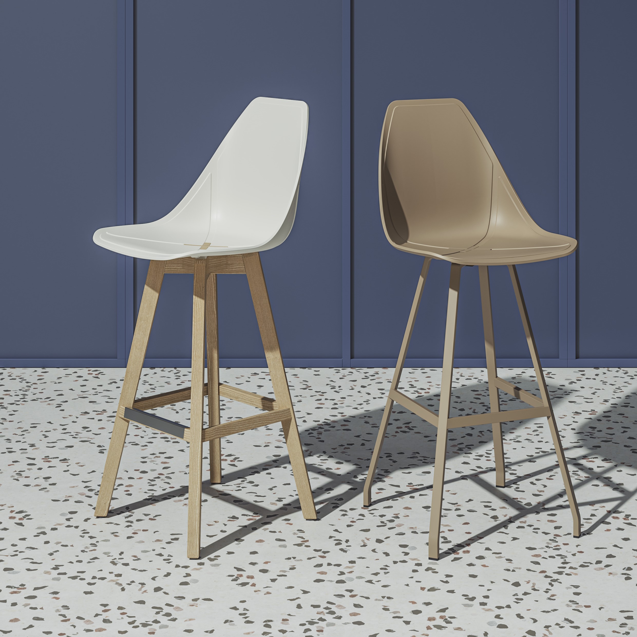 Disponibile nelle versioni sedia o sgabello, dalle particolari gambe rettangolari in frassino.