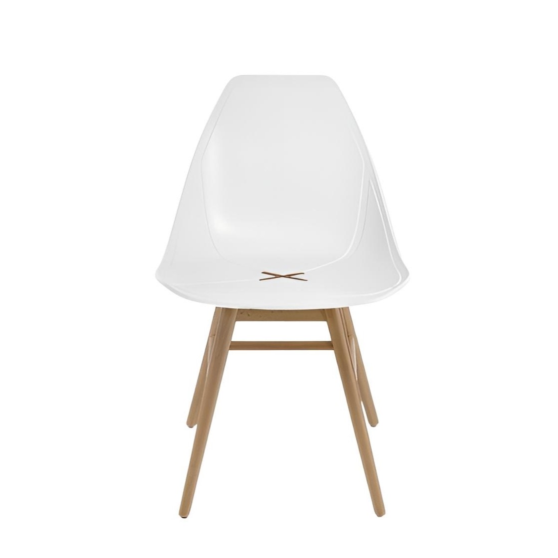 La X Wood 2 rappresenta la variante più calda e naturale della serie, pensata per chi desidera integrare elementi organici in contesti dal design contemporaneo. La scocca bianca in polipropilene, dalla linea fluida e avvolgente, crea un contrasto luminoso con la struttura portante in legno di faggio. La base è caratterizzata da quattro gambe a sezione conica collegate da traverse strutturali che garantiscono massima stabilità e una durata eccellente nel tempo.